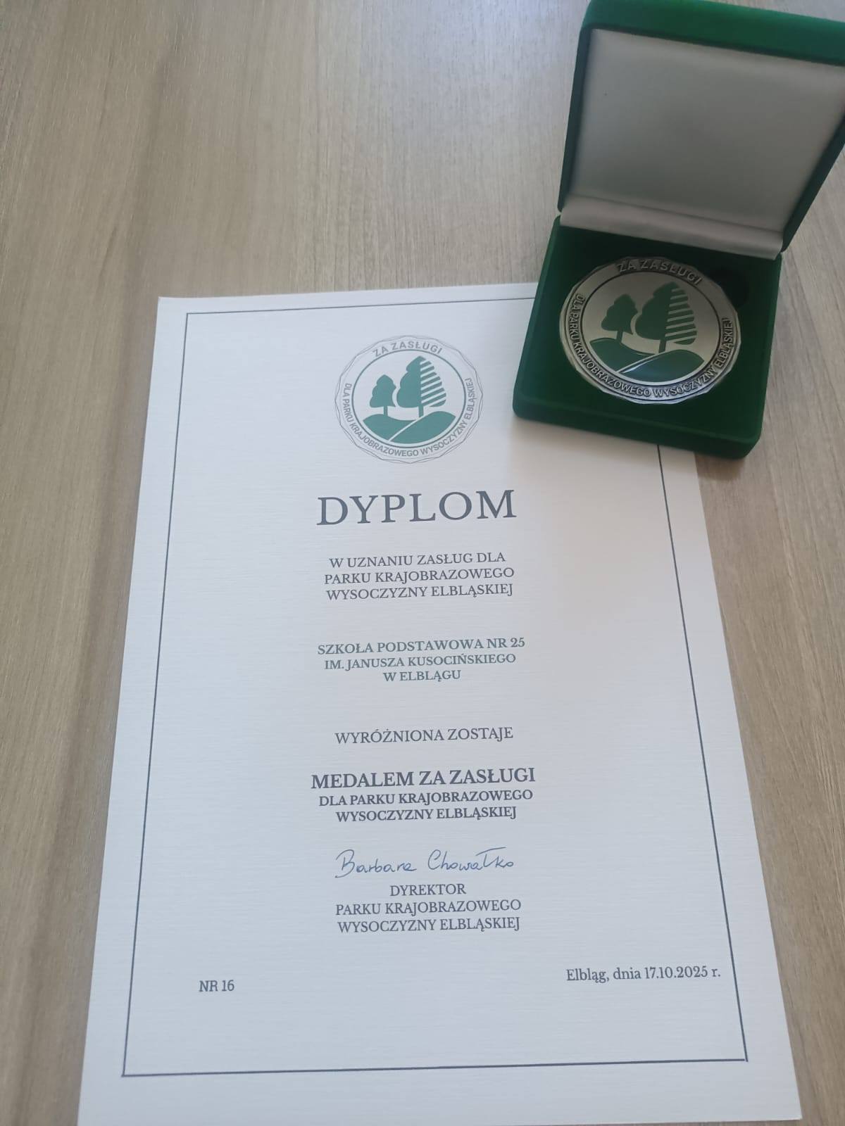 Dnia 17 października 2025 roku podczas gali 40 lecia działalności Parku Krajobrazowego Wysoczyzny Elbląskiej nasza szkoła została wyróżniona medalem w uznaniu zasług dla Parku Krajobrazowego Wysoczyzny Elbląskiej. Serdecznie dziękujemy za wyróżnienie i liczymy na dalszą owocną współpracę.